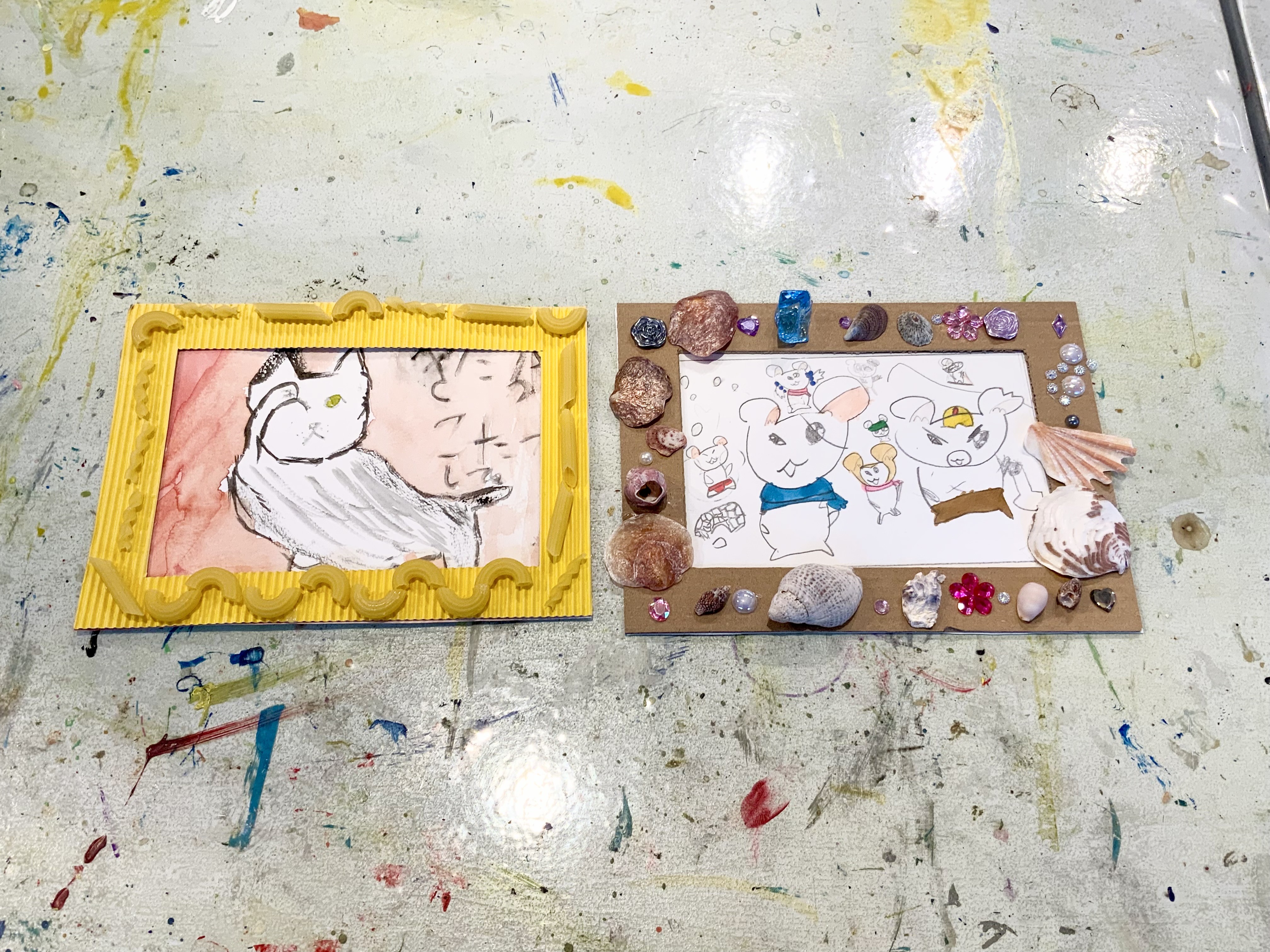 今年最後の課題は、はがきサイズの絵手紙と額縁作りでした!